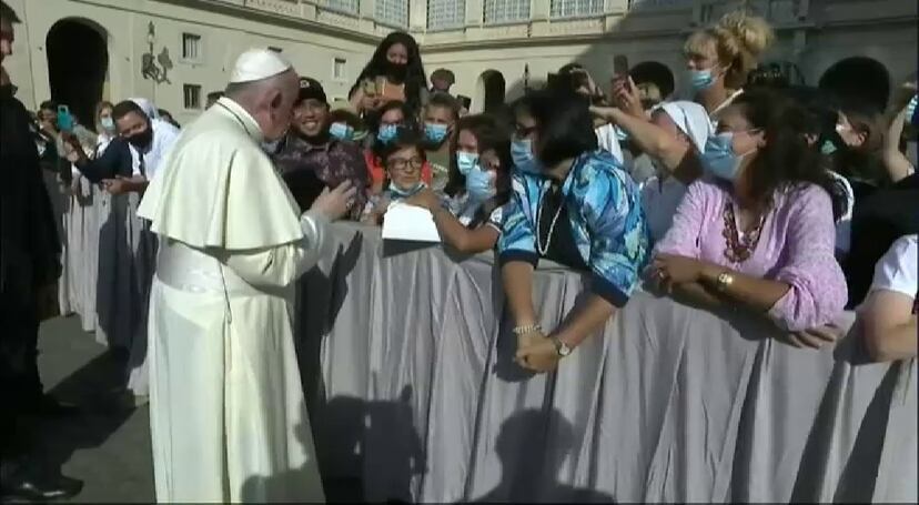 En su mensaje posterior, el pontífice, que se definió durante la pandemia como un Papa enjaulado, sí ha pedido a los congregados que tuvieran en cuenta las distancias para evitar el contagio, lo que le ha valido el reconocimiento y el aplauso de los congregados en el Patio de San Dámaso. Las audiencias del Papa Francisco se retomaron la semana pasada después de 189 días sin contacto directo con los fieles a causa de la pandemia.