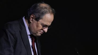 El Tribunal Supremo ha puesto fin este lunes al mandato de ña Quim Torra al frente de la Generalitat. La Sala de lo Penal ha confirmado la condena a un año y medio de inhabilitación por un delito de desobediencia impuesta al president por incumplir la orden de la Junta Electoral Central de retirar, durante la campaña electoral, una pancarta de apoyo a los presos del procés del Palau de la Generalitat, la sede de la presidencia. “Celebramos elecciones en los próximos meses”, ha manifestado el dirigente en la tarde de este lunes, en comparecencia, tras la decisión. El periodista de EL PAÍS Xavier Vidal-Folch analiza el paso de Torra por la presidencia de la Generalitat de Cataluña en este vídeo.