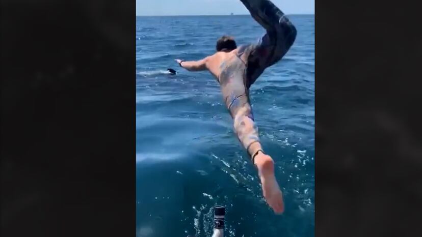 Por el Océano Pacífico, a veces pasean tiburones peregrinos, grandes y llamativos pero considerados casi inofensivos, pues se alimentan de plancton. Ryder DeVoe, un pescador de 21 años, navegaba la semana pasada junto a varios amigos cerca de la cosa de Encinitas, en California, cuando vieron a un tiburón en el agua. DeVoe se zambulló para nadar cerca del animal, mientras su amigo Max Stokes lo filmaba, y rápidamente entró en pánico, cuando notó que el animal era en realidad un gran tiburón blanco.