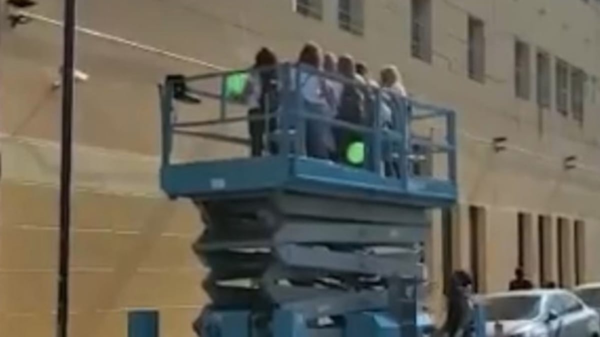 Un grupo de amigas alquila una grúa para apoyar desde la ventana a una enferma de cáncer