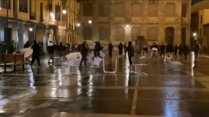 En los días previos a los disturbio de este domingo en la ciudad de León, circulaba una convocatoria por redes sociales: “A las ocho de la tarde en Botines. Por tus derechos, por la libertad”. Agentes de la Policía Nacional y Local establecieron un dispositivo para contener a los convocados, que sobre las 20.00 comenzaron a agruparse frente al Museo Gaudí-Casa Botines de la ciudad. De allí se dispersaron por todo el centro de la ciudad, volcando vallas y encendiendo bengalas que lanzaban al pavimento al grito de “¡Libertad!”. Un total de 16 personas han sido identificadas por los disturbios, pero no ha habido ningún detenido.
