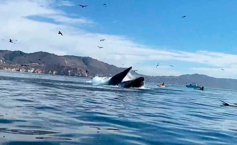 El mamífero pretendía comerse un banco de peces que se acercó al kayak de las dos mujeres en California