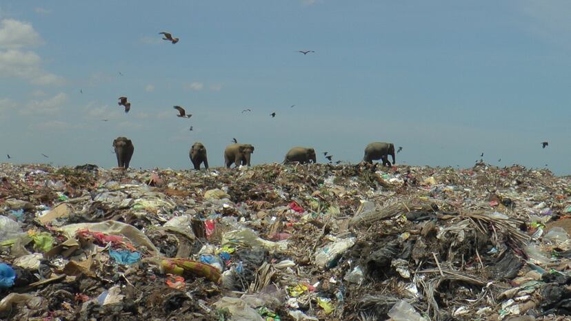 Un dron graba a decenas de elefantes comiendo basura en Sri Lanka