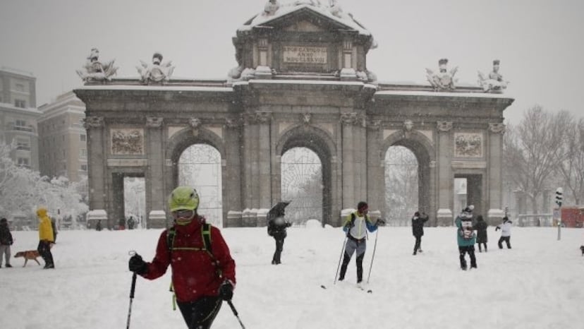 Así vivían esta mañana muchos madrileños el peor temporal que ha sufrido la ciudad en años, que ha dejado imágenes insólitas como esta de la capital de España convertida en una improvisada estación de esquí. Desde las 9.00 de la mañana, calles como la Gran Vía, Alcalá o Serrano se han convertido en pistas de esquí donde muchos ciudadanos, con esquís y tablas de snowboard, se han deslizado como si lo hicieran por la montaña nevada. A pesar del caos y de la paralización total de la ciudad, la postal de este sábado del centro de Madrid, después de 24 horas de tormenta de nieve ininterrumpida, estaba formada por deportistas y familias jugando con niños y mascotas como si de una pista de nieve se tratara.