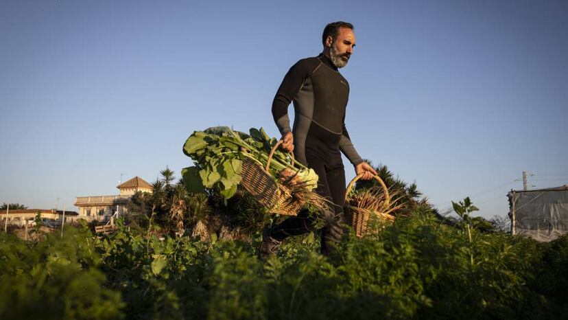 Rafael Monge cultiva en un navazo, un tipo de huerto que se forma en los arenales cercanos a la playa