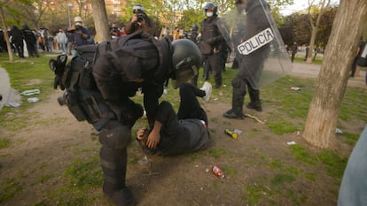 La Policía carga contra los manifestantes que protestaban por el acto del partido ultra en el barrio madrileño