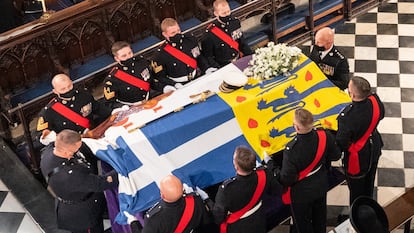 Desde el Land Rover que portaba su féretro a las puertas de la Capilla de San Jorge, en el Castillo de Windsor, hasta la música, pasando por los representantes militares que han desfilado y las lecturas religiosas. Fue el mismo Felipe de Edimburgo quien seleccionó por sí mismo todos los detalles de su funeral. Aun así, la ceremonia ha estado marcada por la pandemia, tanto por la brevedad como por la distancia de los 30 miembros de la casa real británica que han asistido al servicio religioso. El Gobierno británico había pedido a los ciudadanos que no acudieran a Windsor, para evitar concentraciones que infringieran las normas de distanciamiento social. Aun así, centenares de curiosos han merodeado por sus alrededores durante toda la mañana.