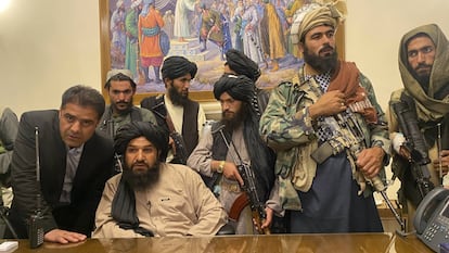 Los talibanes ya han tomado el palacio presidencial de Kabul. Un acto simbólico que representa el control del país por parte de los insurgentes. Como se ve en las imágenes tomadas por la cadena catarí Al Jazeera, la milicia ha entrado en el edificio y ha recorrido los principales salones, entre ellos, el despacho del presidente Ashraf Ghani Ahmadzai, quien huyó ayer del país ante la llegada de los talibanes a Kabul. Los insurgentes también han retirado la bandera afgana y han celebrado la toma del país. Veinte años después de que fuesen expulsados del Gobierno por Estados Unidos, la milicia talibán vuelve a controlar Afganistán. Mientras tanto, cientos de afganos intentan huir del país por el aeropuerto, la única vía de escape y por la que las tropas internacionales están repatriando a los extranjeros residentes en Afganistán.