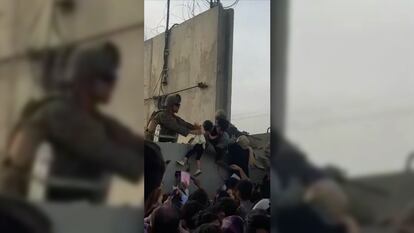 Vídeo | Las tropas estadounidenses ayudan a varias personas a saltar el muro del aeropuerto de Kabul