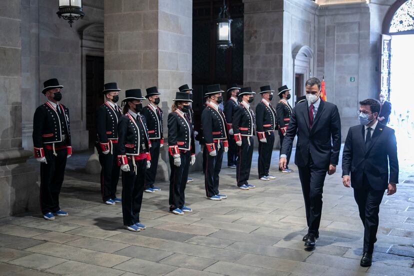 Vídeo | El protocolo de recibimiento a Pedro Sánchez por Pere Aragonès en la mesa de diálogo
