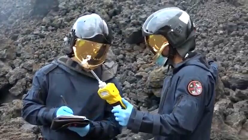 Vídeo | Cascos especiales y medidores de explosividad para estudiar los gases del volcán de La Palma