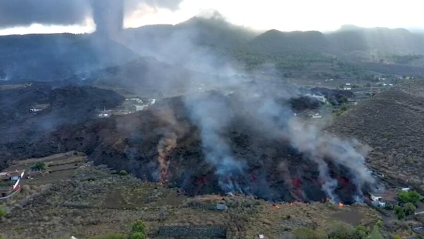 La lava del volcán de La Palma continúa su lento descenso hacia el mar mientras arrasa con todo lo que se encuentra a su paso. Para comprobar el alcance de la colada, la Unidad Militar de Emergencias ha captado a vista de dron imágenes de su avance a su paso por Los Llanos de Aridane, al oeste de La Palma, que han difundido este jueves. El frente del magma ya se sitúa a unos 2,5 kilómetros de la costa, según el satélite del programa Copernicus, de la Agencia Espacial Europea, que cifra en 166,2 las hectáreas que han quedado arrasadas por la erupción.