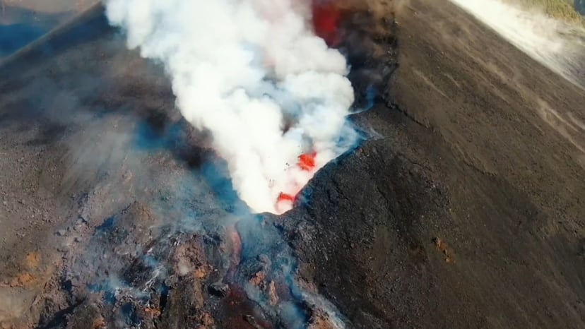 Una densa columna de humo blanco emana de la boca del volcán y mantiene en vilo a las autoridades, que advierten de que el cambio de viento amenaza la calidad del aire en la isla. La erupción sigue arrojando fuertes cantidades de gases, lo que indica que no hay signos de debilitamiento. En el vídeo que acompaña a esta noticia se ven las últimas imágenes grabadas por la plataforma de drones SEADRON del Instituto de Ciencias Marinas de Andalucía (ICMAN-CSIC), y por el Instituto Geográfico Nacional (IGN). En ellas se muestra con el máximo detalle el cráter del volcán y el largo recorrido que tiene que recorrer la lava que emana de él hasta su destino final: el mar.