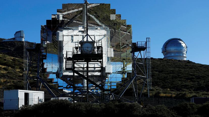 A 16 kilómetros del nuevo volcán de Cumbre Vieja, en el punto más alto de la isla de La Palma se encuentra el Observatorio del Roque de los Muchachos. A pesar de la distancia entre ambos puntos, las cenizas emitidas por el volcán llegan con el viento del sur hasta los telescopios de este centro. Para la mayoría de los equipos esto no supone un problema, al estar instalados en cúpulas que se pueden cerrar para evitar que las cenizas accedan a su interior, pero los dos telescopios abiertos MAGIC, instalados a la intemperie, no tienen esta posibilidad. Como puede observar en el vídeo que acompaña a esta noticia, el personal del observatorio ha tenido que agudizar el ingenio y protegerlos de forma improvisada con bolsas de basura y cinta adhesiva para evitar que se rayen sus lentes o su maquinaria, capaz de mover sus 60 toneladas de peso para apuntar a cualquier parte del cosmos en 20 segundos.