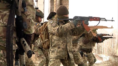 Como puede ver en el vídeo que acompaña esta noticia, un equipo de EL PAÍS ha pasado un día con voluntarios de las Brigadas de Defensa Territorial en Ucrania. El objetivo de esta organización de voluntarios es procurar formación militar a civiles, tanto en tareas prácticas como teóricas. Los ciudadanos que aparecen en el reportaje son arquitectos, contables, peluqueros... Pero los sábados cambian su oficio por el de morteros, instructores u oficiales de comunicaciones de inteligencia en las brigadas.