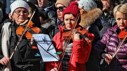 Varios músicos se agrupan en distintas ciudades del país para tocar juntos a pesar de los bombardeos rusos