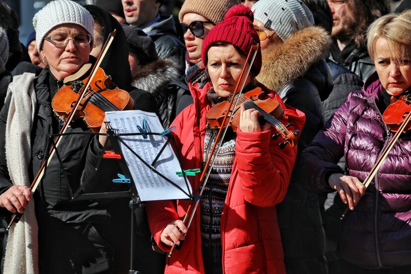 Varios músicos se agrupan en distintas ciudades del país para tocar juntos a pesar de los bombardeos rusos