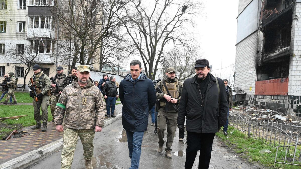 El presidente del Gobierno, Pedro Sánchez, ha viajado a Ucrania para apoyar y visitar distintas ciudades que forman parte del escenario bélico que comenzó el pasado 24 de febrero. Este vídeo recoge las imágenes que se ha encontrado el jefe del Ejecutivo en comparación con la última visita de un alto representante del Gobierno de España. Dos semanas antes del comienzo de la guerra, el ministro de Exteriores, José Manuel Albares, hizo lo propio como muestra del apoyo de España al diálogo en respuesta a la movilización de miles de soldados rusos a las puertas de la frontera rusa con Ucrania. Sin embargo, todo el apoyo internacional para evitar la agresión fue incapaz de frenar la orden de Vladímir Putin, presidente de la Federación Rusa, que, poco después, atacó el país vecino por el norte, el sur y el este.