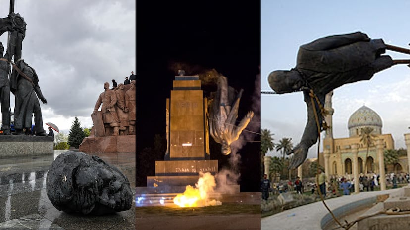 Lo ocurrido con esta figura no es un hecho aislado en tiempos de conflicto. Como se explica a lo largo de este vídeo son muchas las construcciones que se han demolido bajo circunstancias similares. Entre otras cosas, en el vídeo se contempla la destrucción de los Budas Gigantes de Bamiyán (2001) y el desplome de la efigie de Hussein en Bagdag (2003). El autodenominado Estado Islámico tampoco se queda atrás a la hora de destruir obras, como por ejemplo lo ocurrido en Siria con las históricas ruinas de Palmira o las estatuas milenarias del museo de Mosul, en Irak.