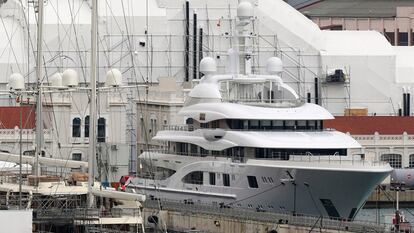 El 'Valerie', de Sergey Chemezov, atracado en el Puerto de Barcelona.Foto: Saúl Ruiz / Paula Casado / Rodrigo Merino / Antonio Nieto | Vídeo: Enric Fontcuberta / EFE