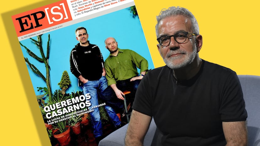 “Creíamos que la ley del matrimonio gay no iba a salir adelante, de verdad que no —repite enfatizando la negación—. Éramos muy escépticos por la influencia de la Iglesia, el poder económico, lo establecido… Fue complicado, pero sucedió”, recuerda con las gafas de pasta empañadas en el primer episodio de Yo fui portada. Este nuevo formato de vídeo de EL PAÍS recupera y actualiza las historias de las personas a las que un día su vida las llevó a protagonizar la portada del periódico.