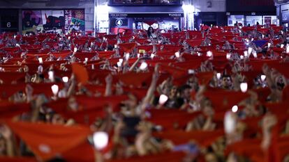 Los asistentes entonan la canción con los pañuelos rojos en mano y las velas encendidas