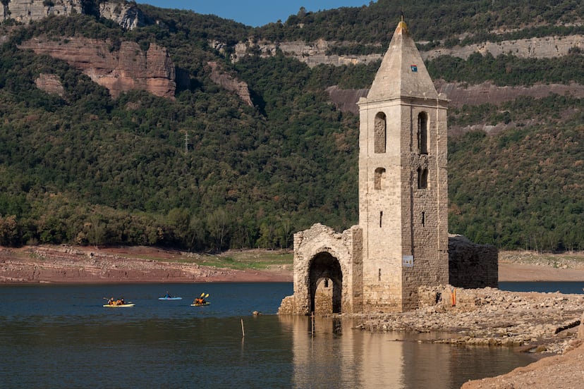 En 1962, el antiguo pueblo de Sant Romà de Sau quedó sepultado por el agua tras la construcción del pantano en los alrededores. Su iglesia también quedó sumergida a 23 metros de profundidad, según un estudio reciente de la Universidad de Barcelona. La sequía que atraviesa España ha provocado que el nivel del pantano de Sau descienda hasta el 37% de su capacidad y la iglesia emerja casi totalmente, como puede ver en el vídeo que acompaña a esta noticia. Solo los vecinos más mayores aseguran haberla visto antes en este estado, aunque en las últimas décadas se ha podido apreciar en más de una ocasión. En 2005, cuando se vació el pantano de Sau para trasvasar el agua al de Susqueda, en mitad de otra sequía, la zona recibió centenares de curiosos que se acercaron a visitar las ruinas del antiguo pueblo.