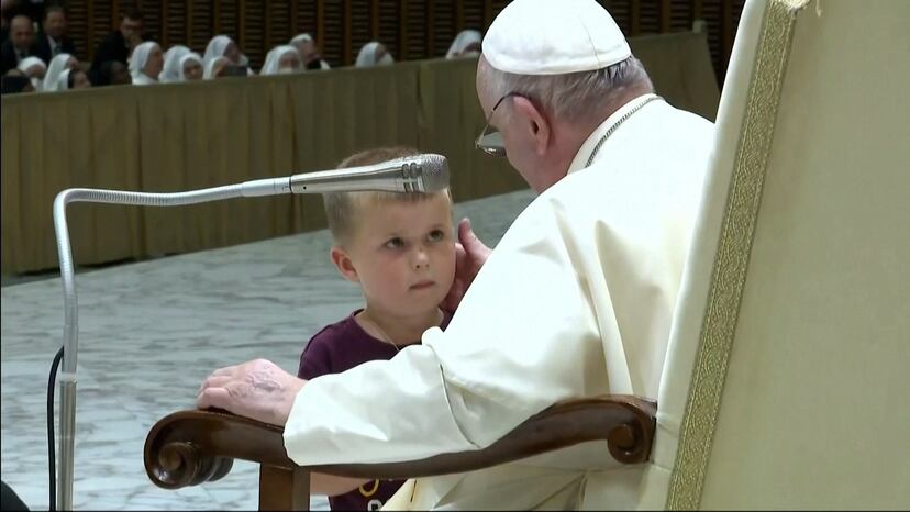 Vídeo | Un niño se cuela durante la audiencia semanal del papa Francisco y permanece a su lado durante unos minutos
