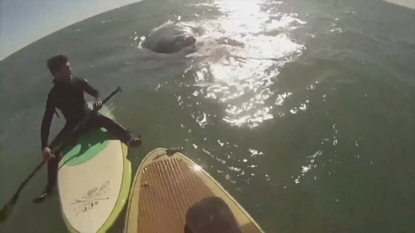 Vídeo | Dos bañistas se ven sorprendidos por ballenas mientras practicaban ‘paddle surf’ en Argentina