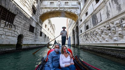 Vídeo | Dos personas recorren los canales de Venecia haciendo esquí náutico