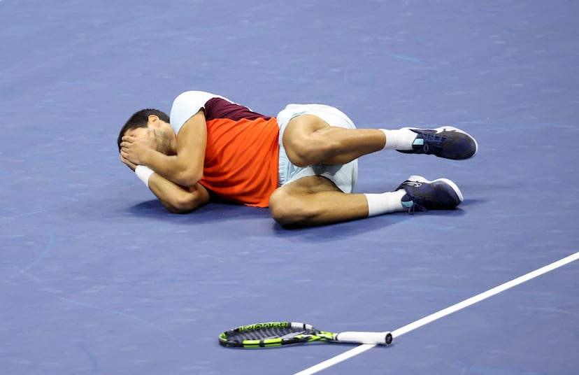 Ha sido la primera victoria de Carlos Alcaraz en un Grand Slam. Se ha convertido en el número uno de la ATP. Es también la primera vez que alguien llega a la cúspide del tenis mundial con 19 años. Todo ha sucedido en el partido contra Casper Ruud (6-2, 2-6, 7-6(1) y 6-3, tras 3h 20m). En el vídeo que acompaña a esta noticia se puede ver el resumen completo del partido. Un encuentro eléctrico, lleno de creatividad, con voleas imposibles y con un público entregado como si estuviese en un concierto. Pero hay más. El gesto de Alcaraz al lograr el triunfo quedará ya para la historia del tenis. Ese momento, el abrazo con Ruud y el gesto al levantar su primera copa de Grand Slam. Todo esto, en el vídeo que encabeza esta noticia.