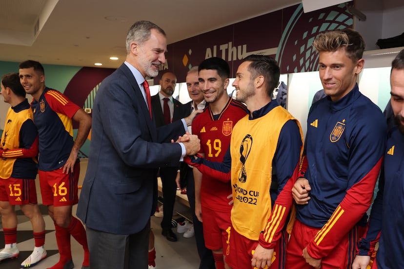 El Rey de España acudió este miércoles a felicitar a los jugadores de la Roja tras su victoria en el debut del Mundial de Qatar 2022