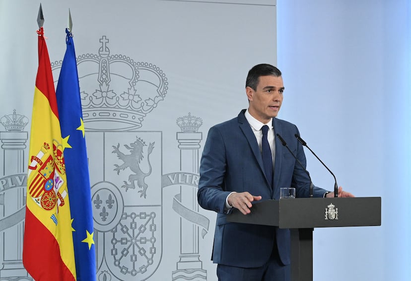 El presidente del Gobierno español, Pedro Sánchez, hace una declaración institucional en Madrid, sobre la decisión del Tribunal Constitucional de suspender las enmiendas a la reforma judicial impulsadas por el Gobierno.Foto: BORJA PUIG DE LA BELLACASA (AFP) | Vídeo: CANAL PARLAMENTO