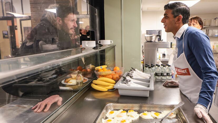 Vídeo | La incómoda conversación entre Sunak y una persona sin hogar durante un desayuno de Navidad