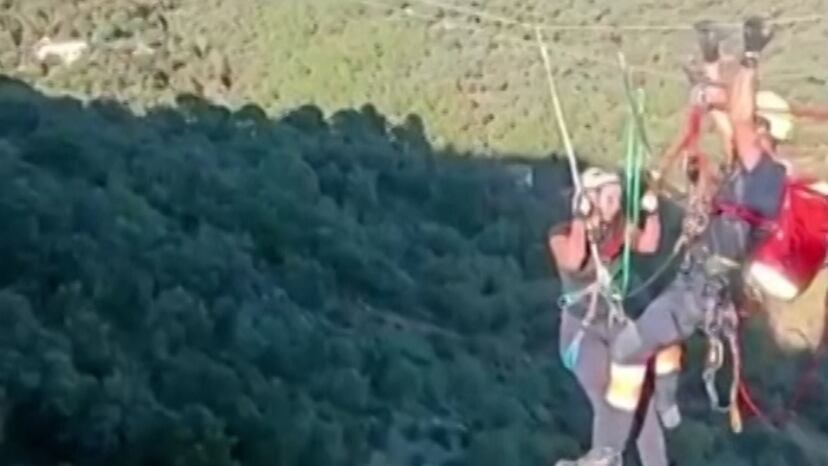Vídeo | Así han rescatado a una senderista atrapada en una tirolina a gran altura en Málaga
