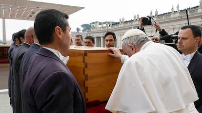 El acceso de Francisco a la explanada y al altar en silla de ruedas ha emocionado a los más de 60.000 devotos que le han aplaudido. En sus últimas apariciones públicas, el Papa se ha movido así debido a los problemas que tiene en la rodilla derecha, aunque se puso en pie para pronunciar las primeras oraciones de la eucaristía. Otro momento clave de la celebración ha sido el beso del secretario personal de Benedicto XVI en el féretro. En los últimos días, Georg Gänswein ha estado sentado o arrodillado en la capilla ardiente, recibiendo el pésame de las autoridades y peregrinos. El hombre que acompañó a Joseph Ratzinger durante los últimos 20 años, hizo declaraciones que muestran las divergencias respecto a la doctrina católica entre los dos pontífices.