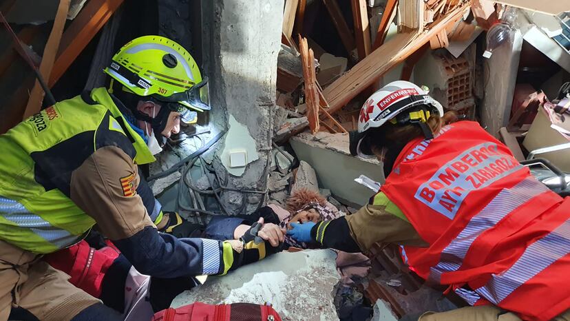 “Durante todo el día estuvimos intentando localizar a víctimas, edificio tras edificio. Todo el día sin descanso”. Así ha descrito el bombero Moisés Belloch, entrevistado en el vídeo que acompaña esta noticia, su jornada entre los escombros del terremoto en Turquía y Siria. En ese mismo día, el presidente de la ONG valenciana Intervención, Ayuda y Emergencias y su equipo rescataron a un hombre de 55 años y a su hija de 20, atrapados bajo centenares de kilos de hormigón. Como puede verse en el vídeo, España no ha tardado en responder a la petición del Gobierno turco de ayuda humanitaria. Centenares de españoles trabajan, especialmente en el rescate de supervivientes, entre los miles de edificios desplomados y prestan ayuda en emergencias.