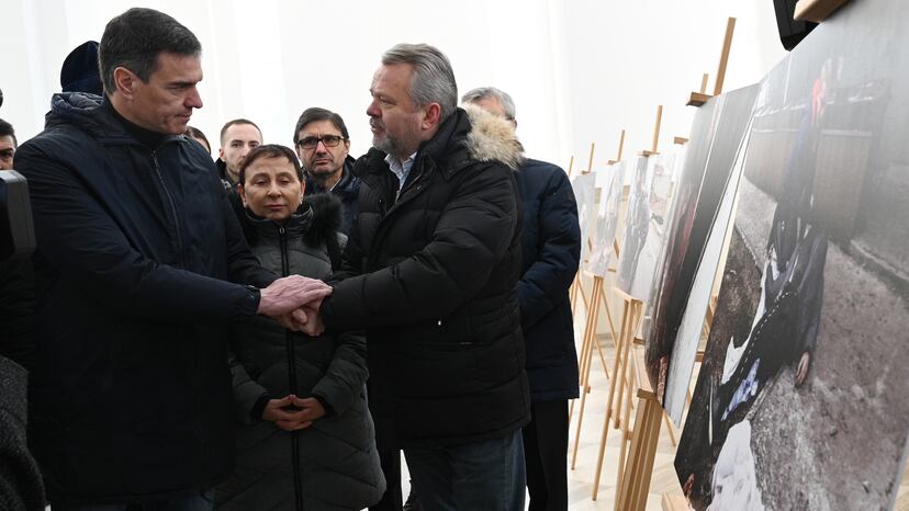 En la víspera de la invasión rusa de Ucrania, el presidente del Gobierno español ha visitado Kiev por segunda vez en la guerra. Pedro Sánchez ha llegado en tren a la capital de Ucrania y después se ha desplazado a las localidades periféricas de Bucha e Irpin, tristemente célebres en el último año por las atrocidades cometidas por las fuerzas de Putin. Luis de Vega, enviado especial de EL PAÍS, y Nicolás Castellano, de la Cadena Ser, han grabado las imágenes del vídeo que acompaña a esta noticia.