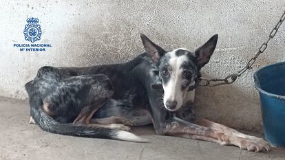 En el vídeo que encabeza esta noticia, se puede observar a un pequeño podenco andaluz, malnutrido, sediento y sin apenas poder moverse. El animal malvivía hacinado junto a otro perro en ese cubículo sin luz, pero cuando la policía llegó a la finca el animal ya había fallecido.
