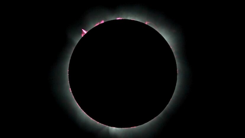 Los congregados utilizaron gafas de observación solar para observar el cielo antes de poder ver un eclipse solar total desde el lugar de observación. La luna se cruzó con el sol durante un minuto, a las 11.29 hora local, sumiendo a los espectadores en la oscuridad y haciendo descender la temperatura. Los espectadores vitorearon ruidosamente cuando el eclipse solar alcanzó la totalidad.