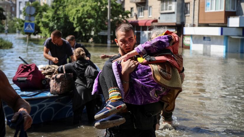 La destrucción de la presa Nova Kajovka ha dejado a la ciudad de Jersón sumergida. La crecida del río Dniéper ha provocado fuertes inundaciones y casi 6.000 personas han tenido que ser evacuadas de sus casas. El vídeo que acompaña a esta noticia muestra cómo los equipos de emergencias y decenas de voluntarios se han volcado para ayudar a los principales afectados. “No puedo dormir, no puedo comer y no puedo entrar en mi apartamento”, decía Svitlana, residente en la región, mientras la transportaban en una lancha hacia su casa. El enviado especial de EL PAÍS, Cristian Segura, relata cómo se están ayudando los vecinos en una zona que se encuentra muy cerca del frente de guerra. Los vecinos tratan de salvar sus pertenencias mientras la región es bombardeada. Jersón no es la única ciudad afectada, según el gobierno ucranio, 30 localidades han quedado anegadas, de las cuales 10 están en la zona bajo control ruso.
