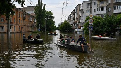Una semana después del derrumbe de la presa de la central hidroeléctrica de Nova Kajovka, el vídeo que acompaña esta noticia muestra el efecto que la catástrofe ha tenido sobre las poblaciones ucranias más afectadas, las situadas en las orillas del río Dniéper en su recorrido hasta el mar Negro. Por un lado, miles de vecinos han tenido que desalojar sus casas a causa de las inundaciones provocadas por el derrumbe de la presa. Por otro, los habitantes que aún quedan en sus domicilios se enfrentan al reto de obtener agua potable. Ante las adversidades derivadas de la destrucción de la presa, la ayuda humanitaria llega a los residentes a través de drones dirigidos por soldados ucranios o a través de barcas.