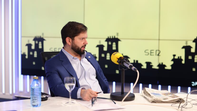 Boric se encuentra en España en un viaje oficial de tres días para asistir a la cumbre Unión Europea – CELAC (Comunidad de Estados Latinoamericanos y Caribeños) que tendrá lugar la semana próxima en Bruselas. Aprovechando su paso por Madrid, además de reunirse con el presidente, Pedro Sánchez, en La Moncloa, mantener un encuentro con empresarios (CEOE) y ser recibido por el rey, Felipe VI, ha visitado los estudios de la Cadena SER para conversar con Javier del Pino, director del programa.