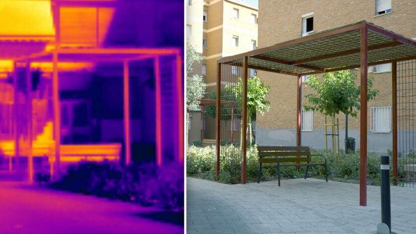 Un programa del Ayuntamiento de Getafe, en Madrid, financiado con fondos europeos, busca bajar entre uno o dos grados la temperatura de una plaza para mitigar la pobreza energética con soluciones sostenibles
