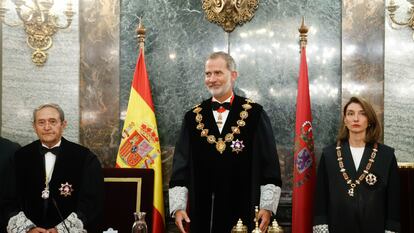 El rey Felipe VI preside la apertura del año judicial marcado por el debate sobre una ley de amnistía en Cataluña que levanta malestar en la judicatura y que condiciona las negociaciones para formar Gobierno, mientras en un CGPJ en descomposición crece el desánimo tras casi cinco años de interinidad. Como es tradición, el Supremo acoge el acto protocolario de apertura del año judicial al que asisten la cúpula judicial y los representantes de las principales instituciones del país, que miran con incertidumbre el complejo escenario político que se abre. En la ceremonia del año pasado, Carlos Lesmes anunció su dimisión si los partidos no llegaban a un acuerdo para desbloquear la renovación del órgano del gobierno de los jueces, todavía pendiente.