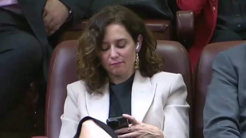 La presidenta de la Comunidad de Madrid protagoniza desde la tribuna de invitados uno de los momentos más comentados del debate