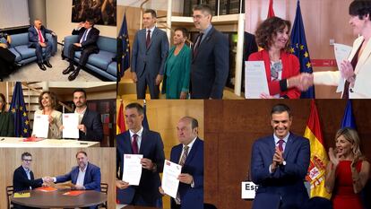 Desde la foto con Bildu, al acto en un museo para sellar su acuerdo con Sumar o el viaje del número tres del partido, Santos Cerdán, a Bruselas, para cerrar una difícil negociación con Carles Puigdemont: el vídeo que acompaña a esta noticia es un recorrido por los 43 días en que el candidato Pedro Sánchez cerró los 179 apoyos que le aseguran la investidura.
