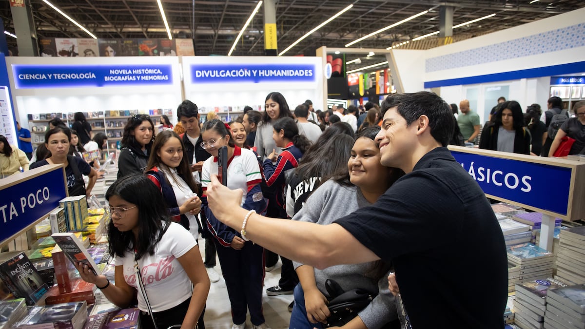 EL PAÍS acompaña al joven regiomontano a buscar algunos de sus títulos favoritos entre los libreros de la feria. El recorrido debe ser breve, el autor no durará mucho antes de que una multitud lo rodee. Encontrar el libro y salir de ahí es la misión que a los pocos metros de ingresar fracasa, pues sus seguidores le comienzan a rodear. Una chica despistada lo ve y por un momento duda en acercarse, pero no se va a quedar con las ganas, así que finalmente lo hace y le dice: “no traigo tu libro, pero, ¿me firmas mi libreta?”.