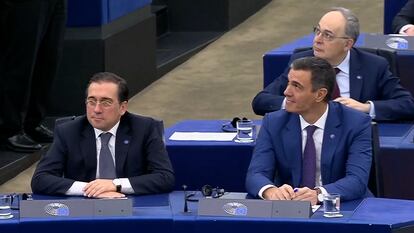 Justo en el momento en el que Ursula Von der Leyen terminaba su intervención por la visita de Pedro Sánchez a la Eurocámara en Estrasburgo, en el hemiciclo han empezado a escucharse ladridos. Las cámaras del Parlamento Europeo han captado las reacciones de sorpresa de varios eurodiputados y de su presidenta, la italiana Roberta Metsola, que no ha podido contener la risa. Se trataba de un perro lazarillo que acompañaba a una persona ciega en la tribuna de invitados.
