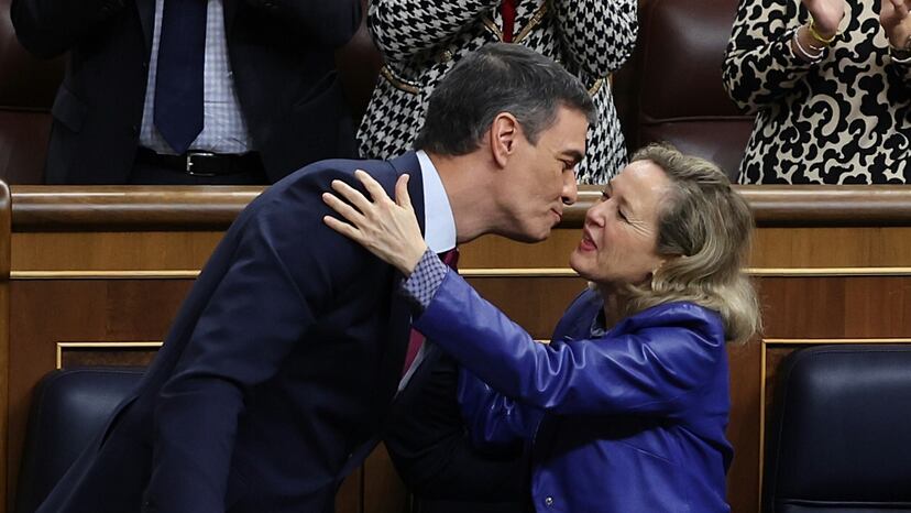 En su último pleno, Pedro Sánchez ha querido despedirse de Nadia Calviño antes de convertirse en presidenta del Banco Europeo de Inversiones. “Es un privilegio que haya sido elegida la primera mujer presidenta del Banco Europeo de Inversiones”, ha dicho. “Tu liderazgo ha sido clave en los logros de este Gobierno en un tiempo muy difícil. Has aportado rigor, brillantez y audacia en la política económica de este Ejecutivo”, ha añadido el presidente entre aplausos de los diputados socialistas y de los miembros del Gobierno de coalición.